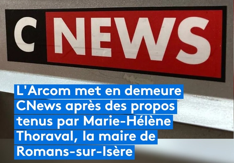 DIA-30 décembre 2025: L’Arcom, régulateur de l’audiovisuel, a mis en demeure CNews, première chaîne d’info en 2025, pour des propos tenus à l’antenne sur l’immigration ou l’islam lors de deux séquences pouvant inciter à la «discrimination», selon une décision publiée mardi au Journal officiel. Le 29 janvier dans l’émission «La grande interview», la maire de Romans-sur-Isère (Drôme) Marie-Hélène Thoraval avait déclaré que les attaques au couteau relèveraient «d’un caractère culturel», leurs auteurs n’étant pas «Français de souche» et ayant «des origines qui sont plus liées avec (…) l’islam».