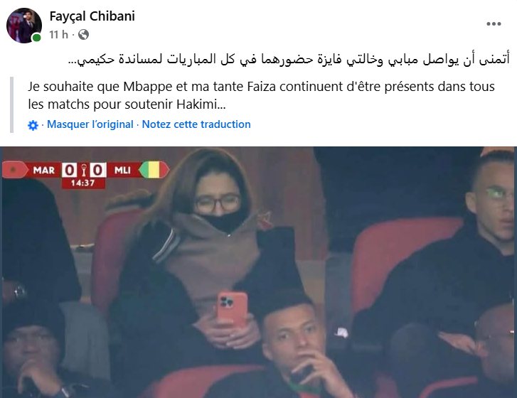 DIA-27 décembre 2025: Au moment où l’image de Zinedine Zidane et sa famille sont venu soutenir l’Algérie et soutenir Luca Zidane le portier titulaire de l’équipe d’Algérie, Kylian Mbappé et sa mère Louisa ont choisis de soutenir le Maroc à la CAN. L’image du numéro des bleus portant le maillot de Hakimi et assistant au match Maroc-Mali qui s’est soldé par un nul a été largement partagé sur les réseaux et a provoqué la colère des supporters algériens. D’autant que Mbappé n’a aucun lien parental avec le Maroc, son père est camerounais et sa mère est algérienne originaire de Bejaia comme le père de Zidane. Certains internautes algériens ont dores et déjà annoncé leur refus de la venue de Mbappé au stade dimanche à Rabat pour soutenir l’Algérie contre le Burkina Faso.